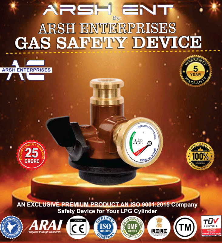 -:LpG GAS SAFETY DEVICE:- GASSAFE INDIA LTD. Original Gas Cylinder Safety Device | Gas Leakage Detector | Gas Safe Device | 30% Gas Savings | 3-Year Warranty | Brass | 8 x 8 x 8 Centimeters